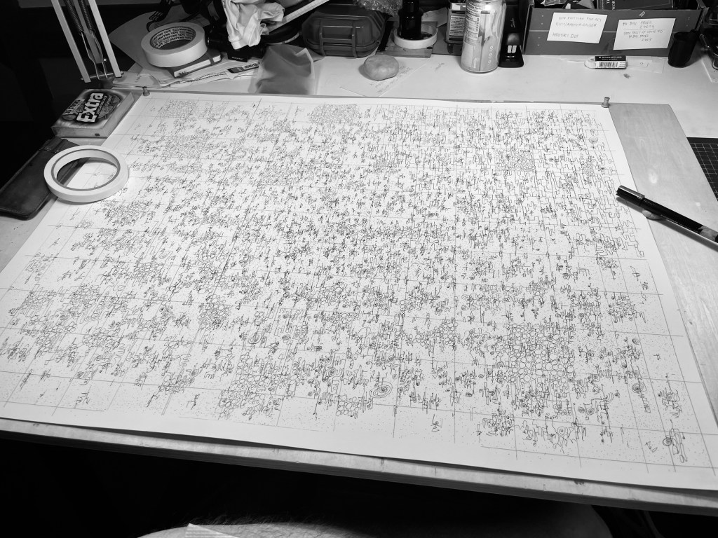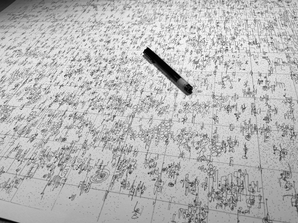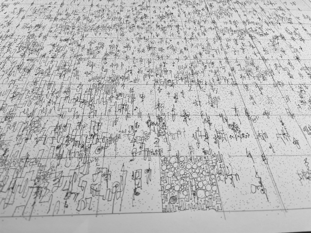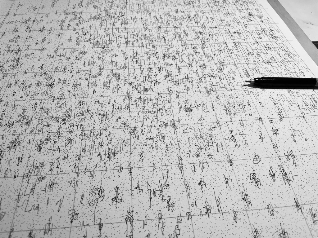 “Meditation, September 2024”, 23”x29”, India ink on Bristol