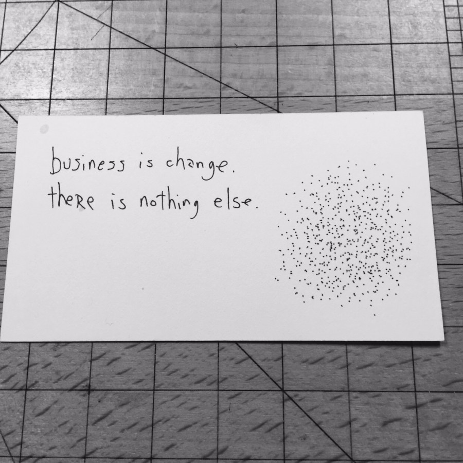 Hugh MacLeod draws one large “Meditation Piece" per month, and that’s it, that's the lot. Miami & UK.